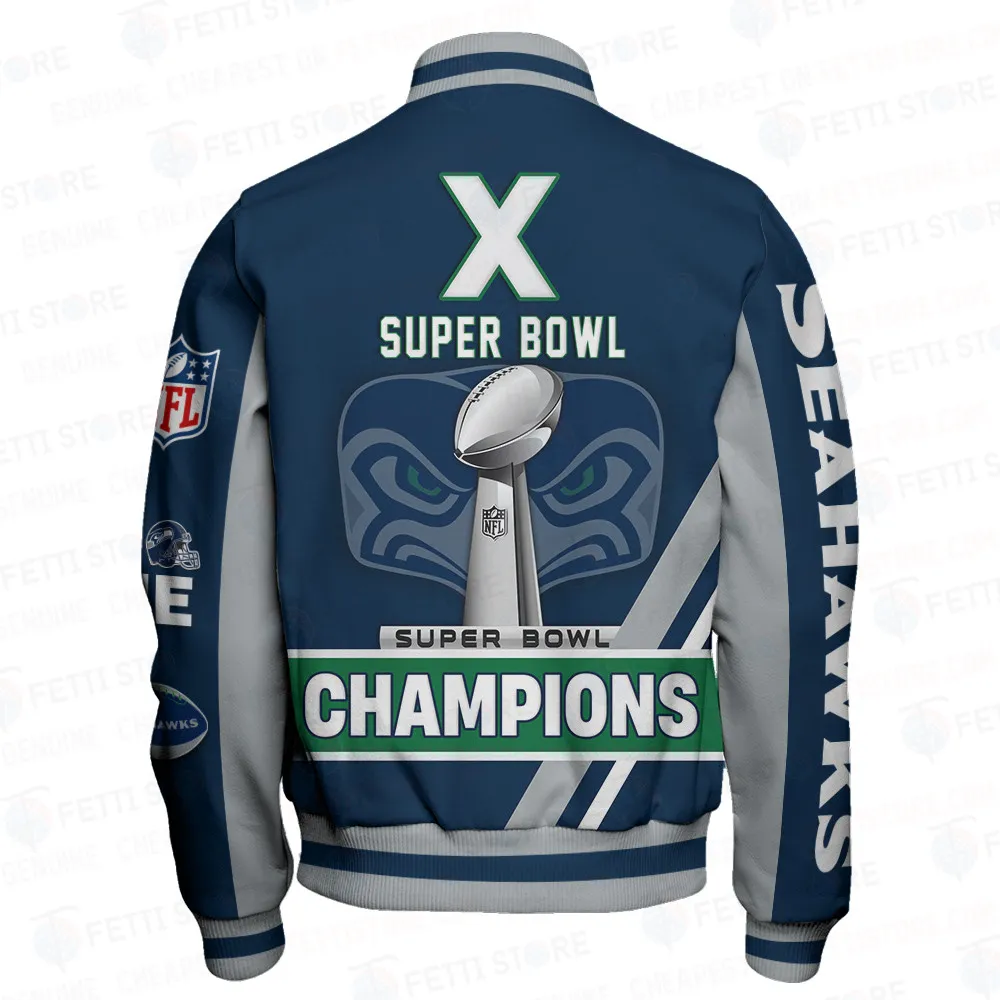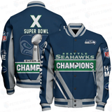 The Seattle Seahawks Super Bowl Varsity Jacket is more than just a piece of clothing; it's a tangible representation of the team's historic victory and unwavering fan pride. This iconic jacket blends classic varsity style with bold Seahawks detailing, creating a statement piece that allows fans to wear their dedication on their sleeves. From celebrating the momentous Super Bowl win to showcasing team spirit on game day, the Seahawks Super Bowl Varsity Jacket is a must-have for any true 12th Man looking to commemorate a defining moment in franchise history.
