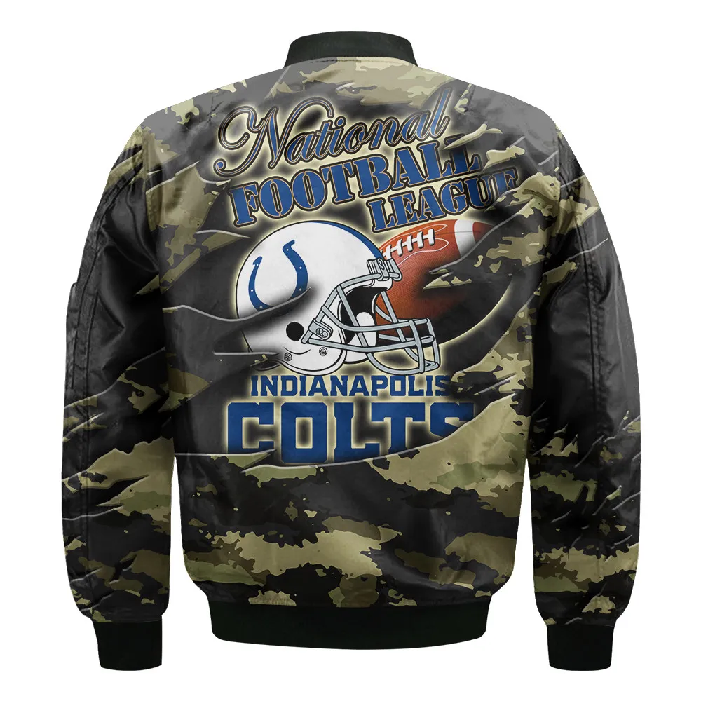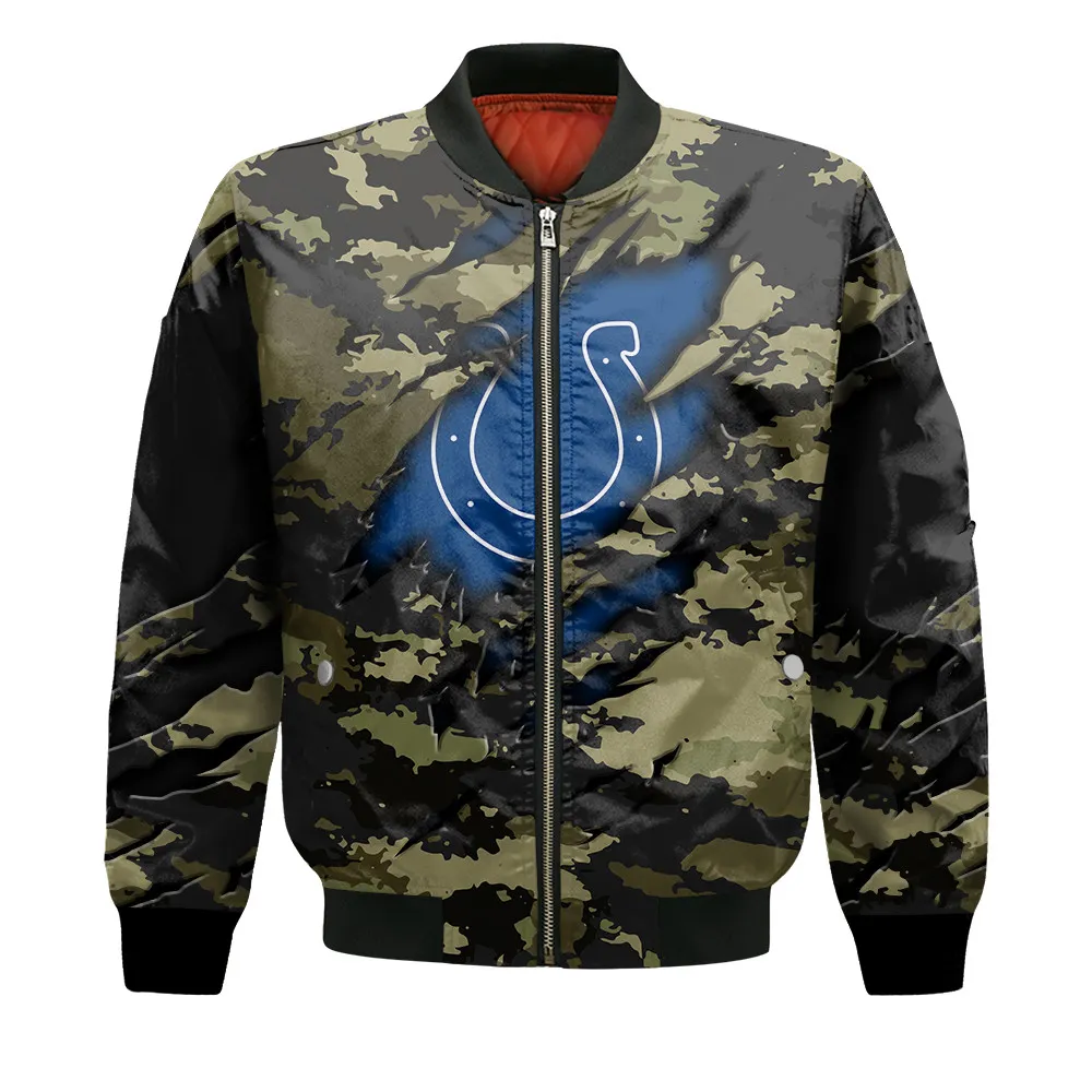 Stay warm and stylish in the Indianapolis Colts camo jacket. This men's jacket features a sleek black camo pattern, perfect for any fan. Made with high-quality materials, it will keep you comfortable and show off your team spirit. Be ready for game day or any outdoor adventure with this must-have piece.